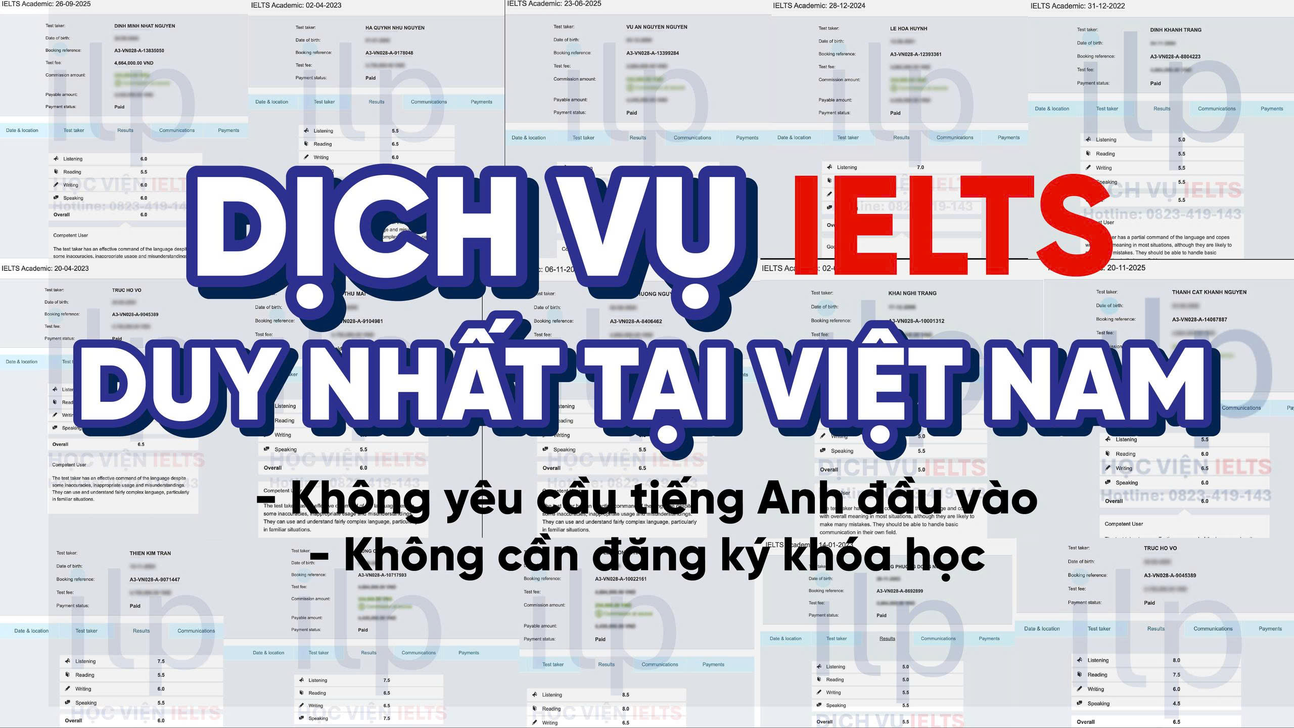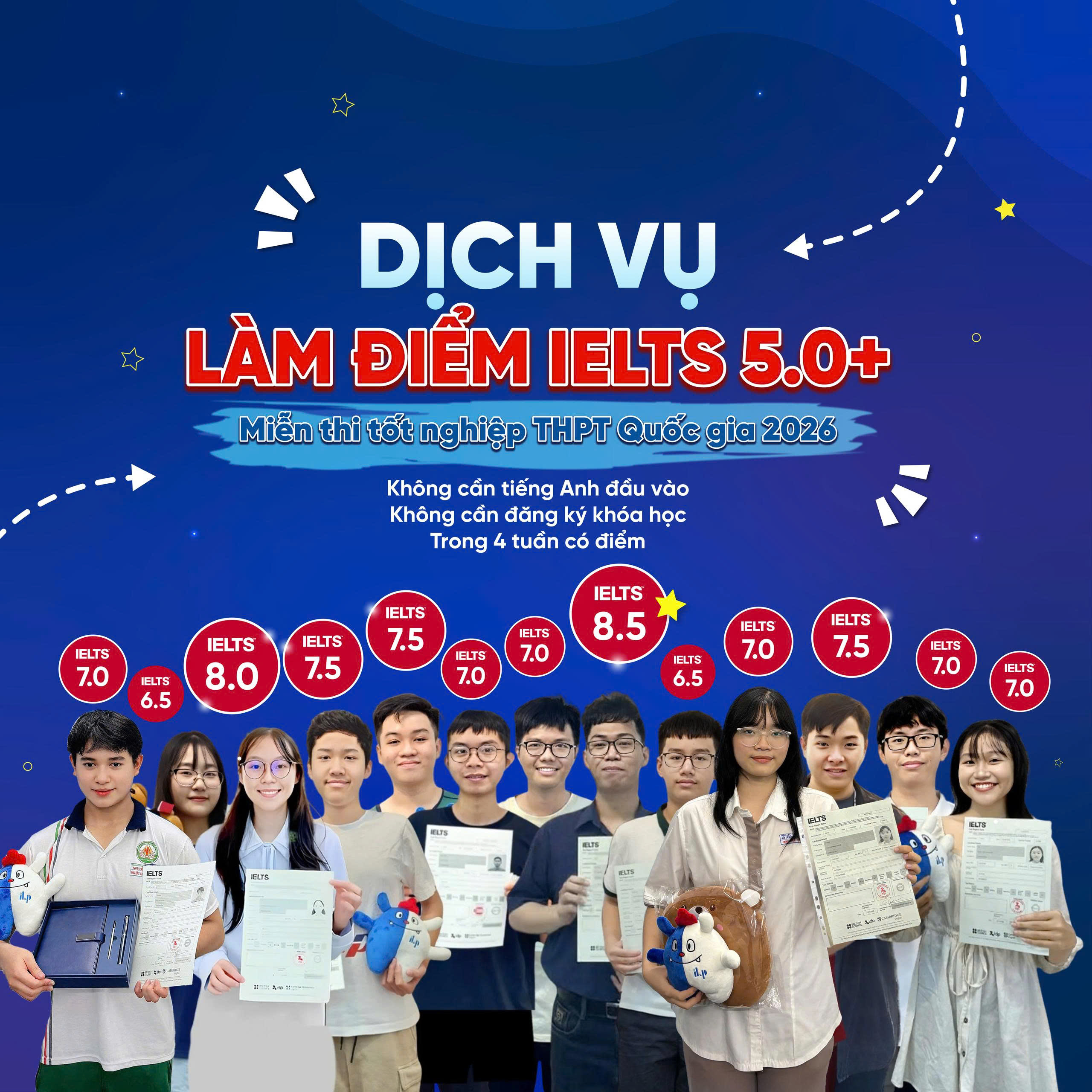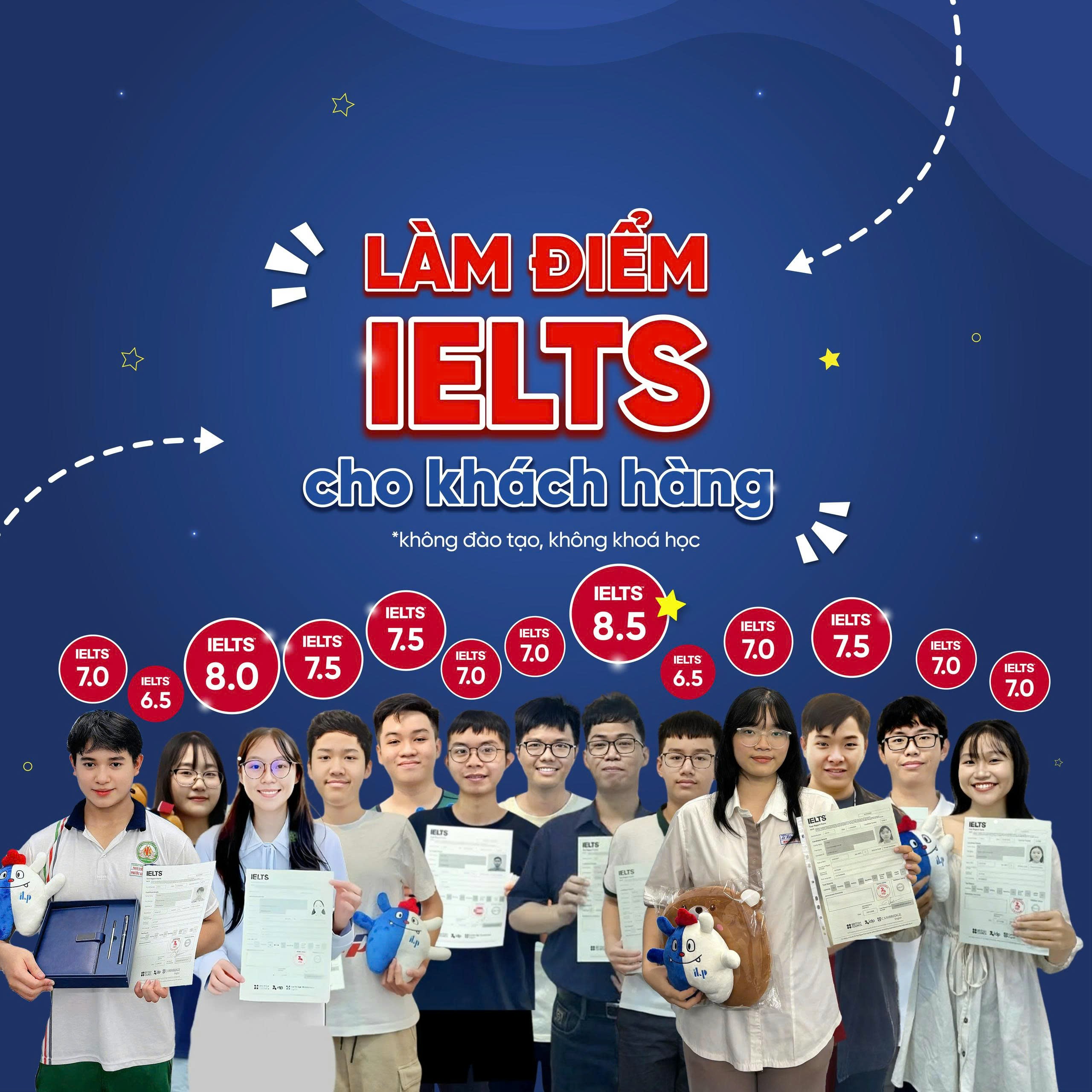 Học viên không cần tốn nhiều thời gian và công sức để lấy điểm IELTS. Quý Phụ huynh và Học viên gọi trực tiếp cho chúng tôi để hiểu về Dịch vụ Làm đề IELTS - Lấy điểm IELTS.