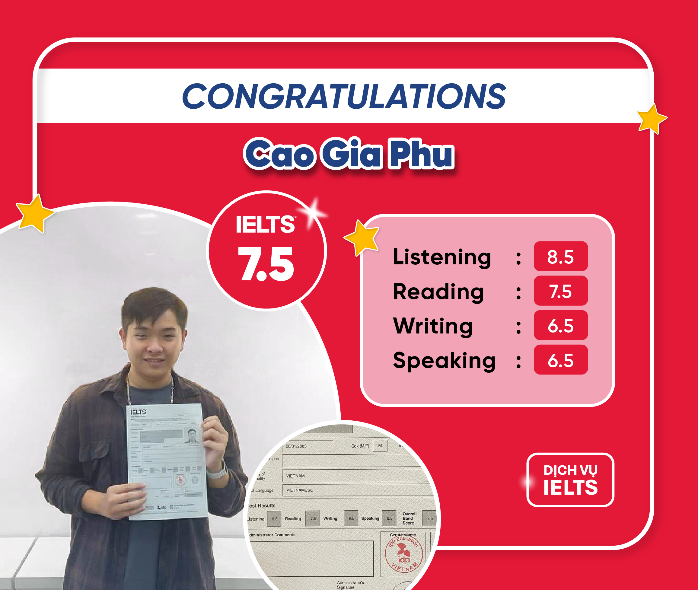 CAO GIA PHÚ ĐẠT IELTS 7.5 OVERALL