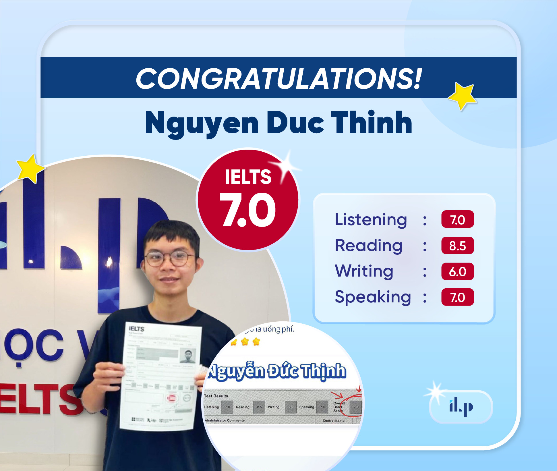Chúc mừng Nguyễn Đức Thịnh đạt IELTS 7.0 Overall với ILP.